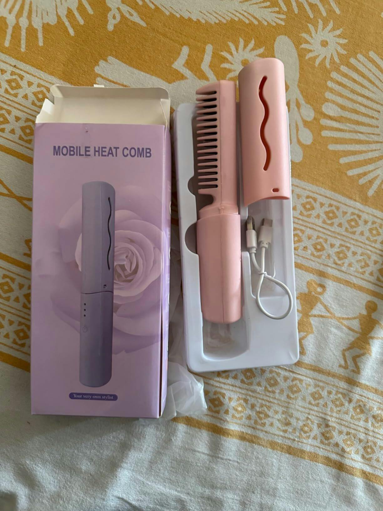 Say goodbye to bulky straighteners. This compact rechargeable hot comb + mini straightener gives you smooth, shiny, frizz-free hair in minutes. Designed for quick touch-ups, travel styling, and on-the-go confidence.